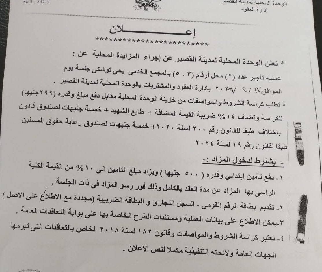 حملة تفتيشية على منافذ البيع والمحلات التجارية بالقصير
